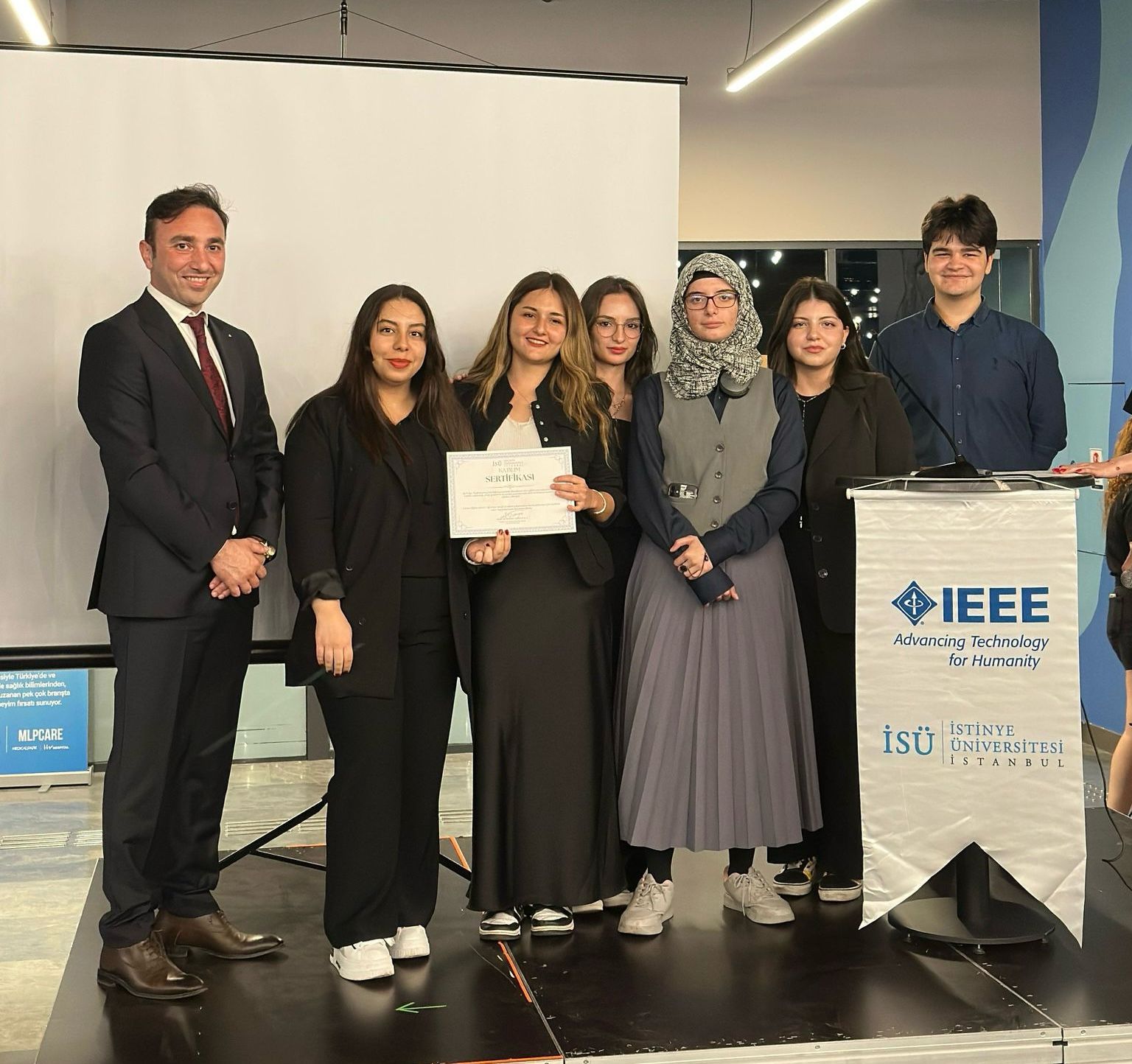 Etkinlik kapsamında düzenlenen Healthineering Yarışmasında 9 farklı takım projelerini sahnede sundu. Yenilikçi fikirlerin yarıştığı organizasyonda, “Cardiac Vessel Segmentation” adlı proje birincilik ödülüne layık görüldü. Bu başarıda emeği geçen IEEE İstinye ekibi ve tüm öğrencilere katkılarından dolayı teşekkür edildi.
