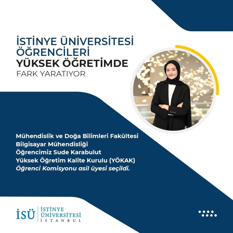Mühendislik ve Doğa Bilimleri Fakültesi Bilgisayar Mühendisliği öğrencimiz Sude Karabulut Yükseköğretim Kalite Kurulu (YÖKAK) Öğrenci Komisyonu asil üyesi seçildi. İstinye Üniversitesi, öğrenci odaklı ve kalite temelli yaklaşımıyla başarılarına bir yenisini…
