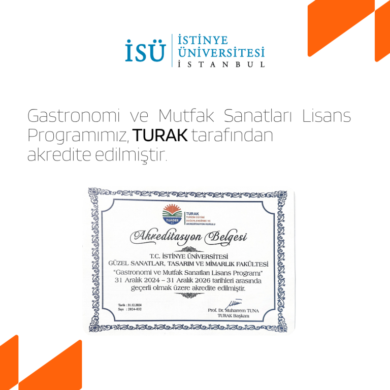 İstinye Üniversitesi Güzel Sanatlar, Tasarım ve Mimarlık Fakültesi bünyesinde yer alan Gastronomi ve Mutfak Sanatları Lisans Programı, Türkiye Turizm Akademisyenleri Derneği’ne bağlı Turizm Eğitimi Değerlendirme ve Akreditasyon Kurulu (TURAK) tarafından…